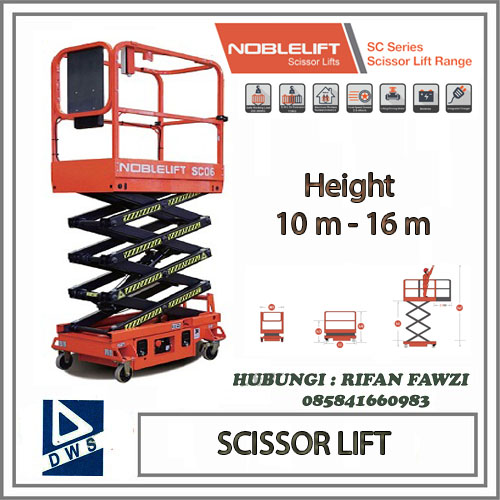 4. SC16H Jangkauan 16 meter, Tinggi Platform 14.meter, Kapasitas 200 kg